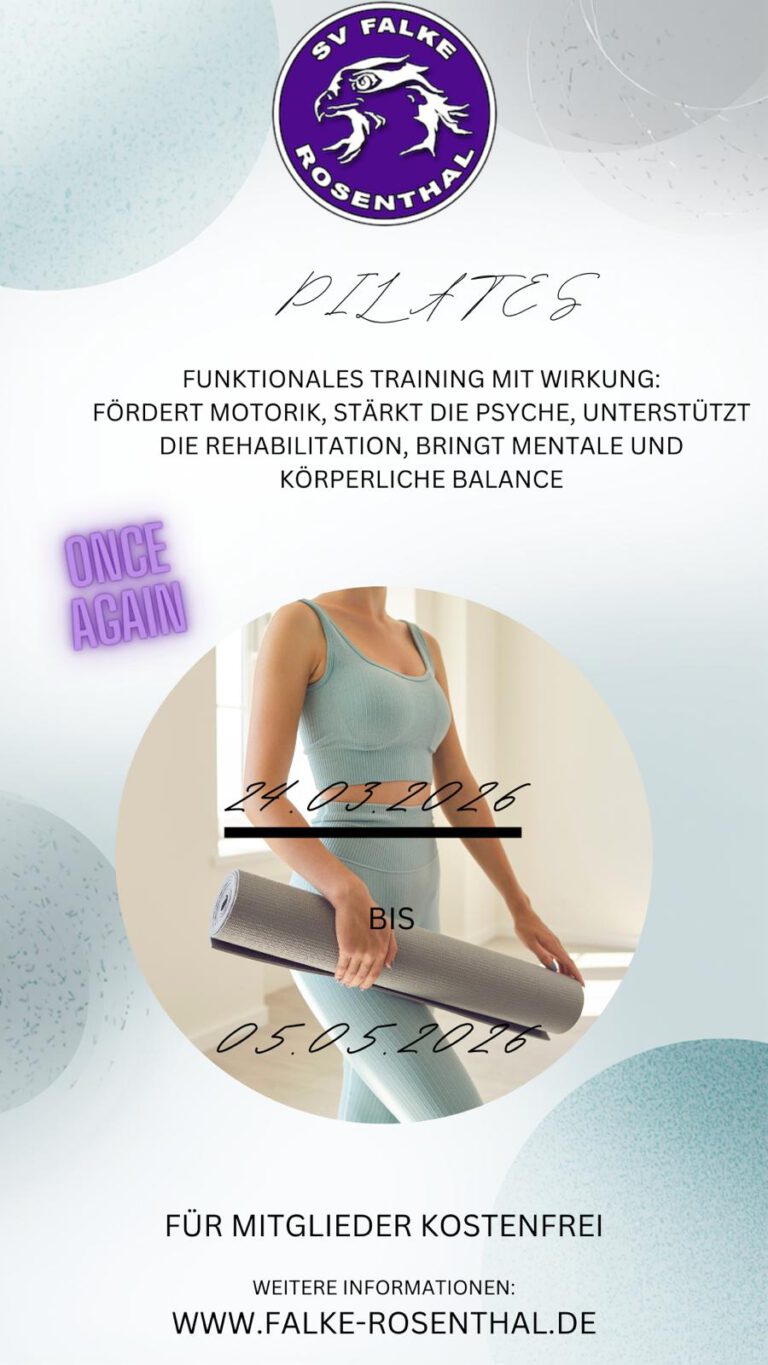 >>> gestärkt in den Frühling mit Pilates <<< Pilates Kurs mit sieben Terminen vom 24.03. bis zum 05.05.2026 mit Karin Lemcke (Link zu Terminen) Der Frühling ist die perfekte Zeit für einen Neustart – auch für deinen Körper.Unser Pilates-Kurs von...